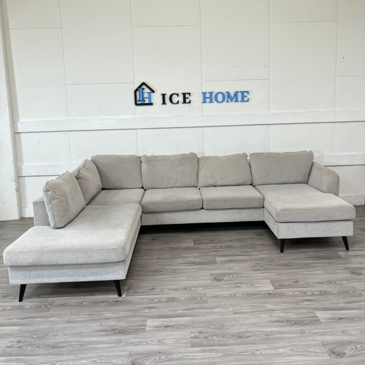En elegant beige nyans – skapar ett lugnt och harmoniskt uttryck som passar i de flesta hem. De svarta, matta metallbenen ger soffan en stilren kontrast och ett modernt lyft. Två dekorativa kuddar ingår och bidrar till både komfort och helhetskänsla.