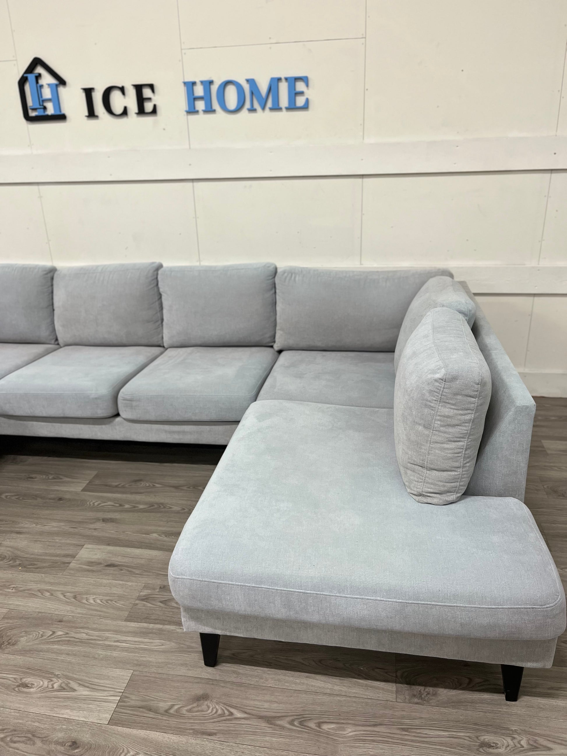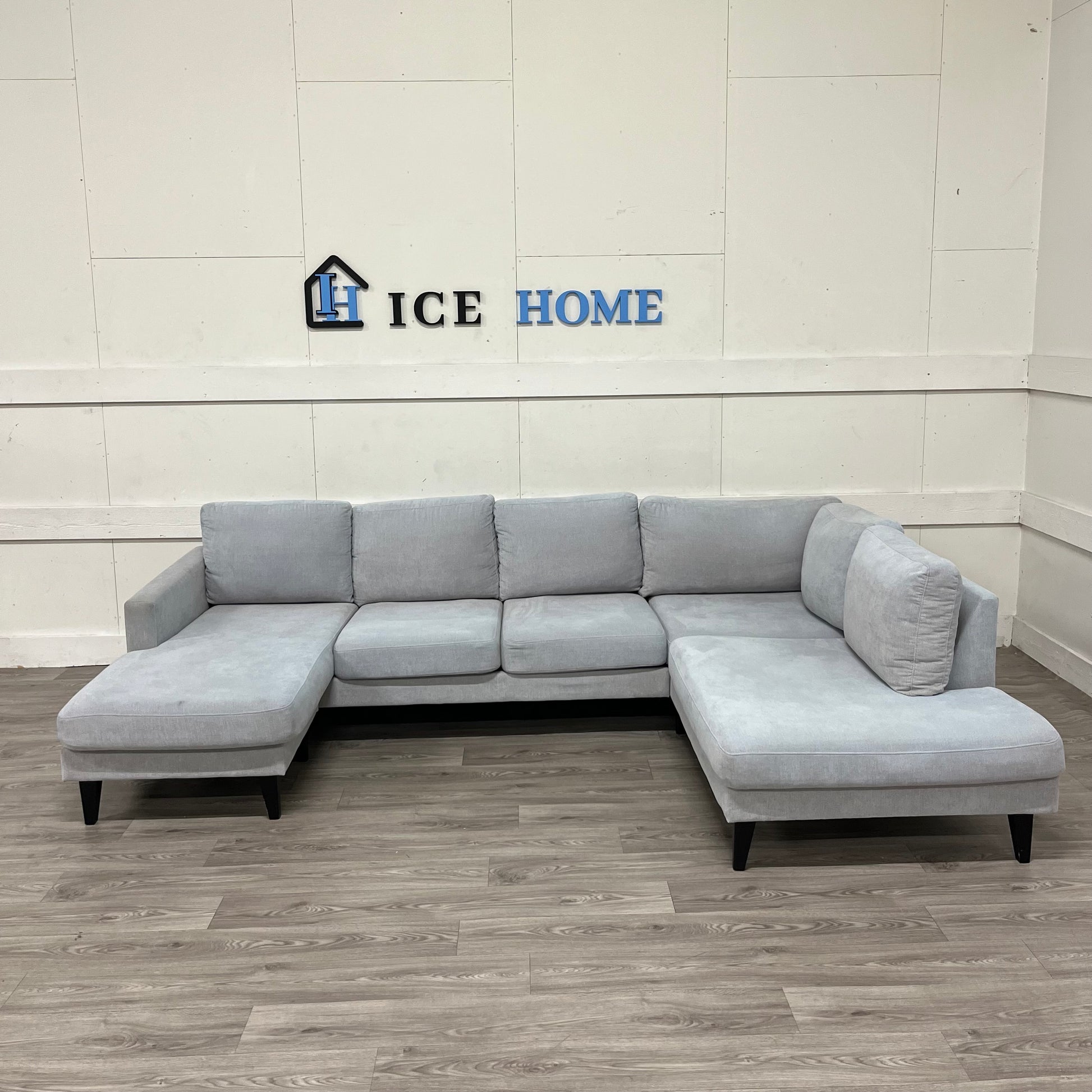 Mio Sierra U-soffa i grått utförande. Soffan är i mycket gott skick och har använts i rök- och djurfri miljö. Modellen är känd för sin höga komfort, generösa sittdjup och tidlösa design, vilket gör den lämplig för såväl större vardagsrum som sociala ytor.