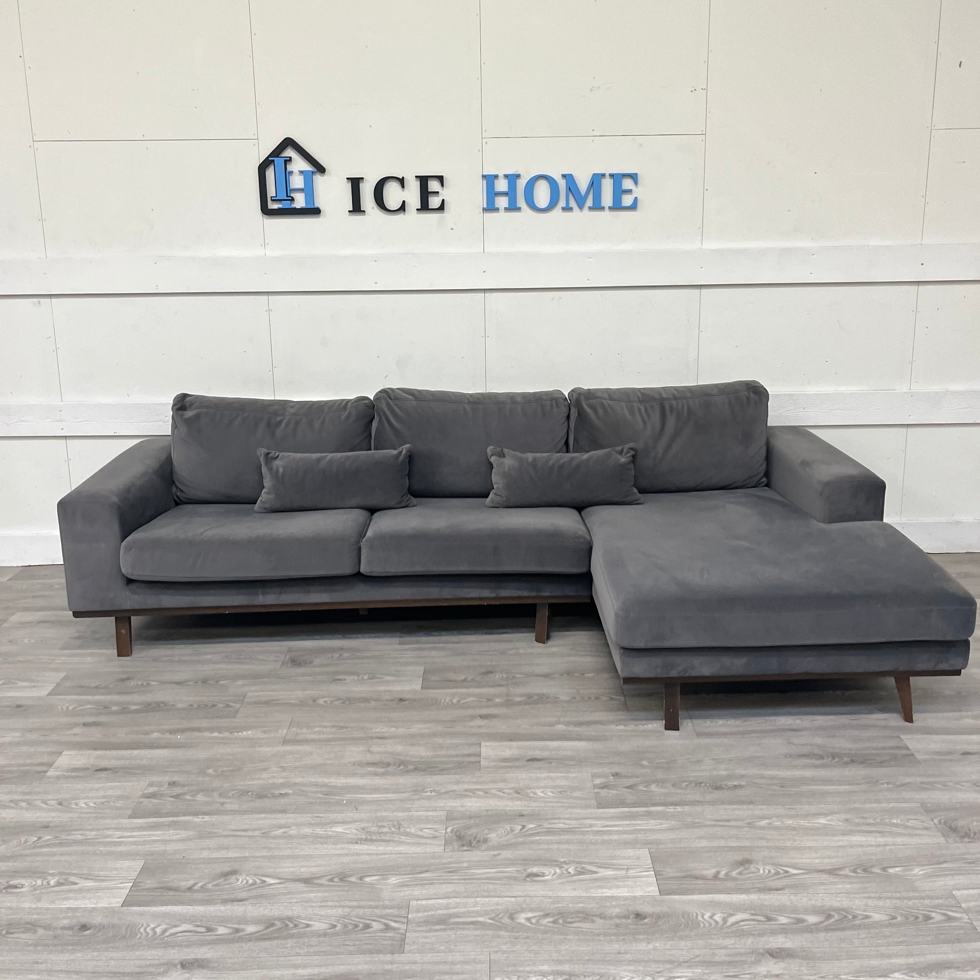 Stockholm är en stilren och bekväm L-soffa med en tidlös skandinavisk design. Den mjuka, grå sammetsklädseln ger ett elegant uttryck samtidigt som soffan bjuder på hög komfort för både vardag och umgänge. Den generösa L-formen skapar gott om plats för hela familjen och passar lika bra för avkoppling som för sociala tillfällen.